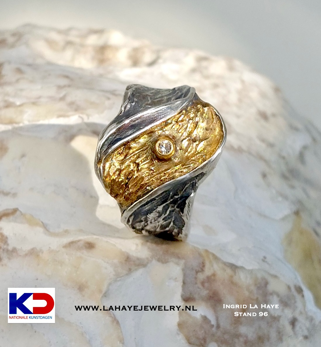 Deze uniek zilveren ring met goud en fonkelend steentje is te zien op de Nationale Kunstdagen in Gorinchem (Indien de ring niet ondertussen verkocht al is!)