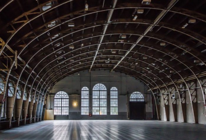 Deze indrukwekkende hal in de Spoorzone van Tilburg was tot begin 2011 de hoofdopslagplaats van de voormalige NS-werkplaats. Inmiddels vormen de industriele spanten en de bijzondere lichtinval een prachtig decor voor de Brabant Art Fair.