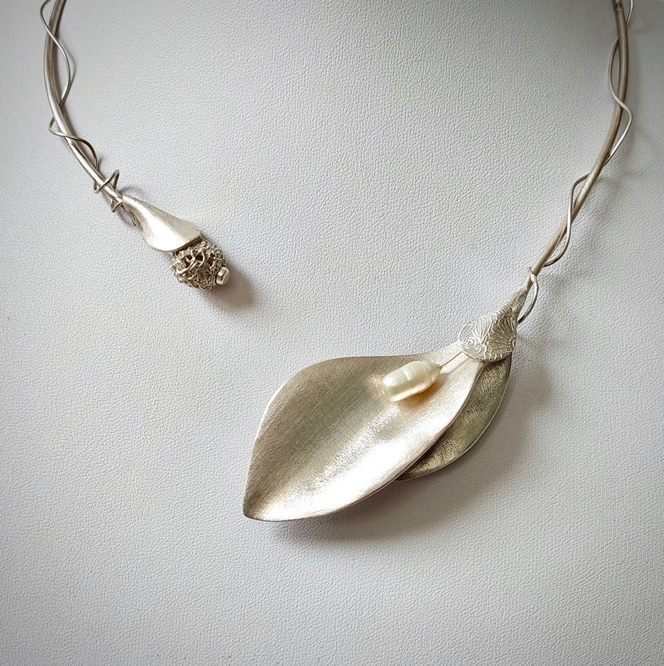 Passion - Opvallende exclusieve zilveren hanger aan spang. Een elegant statement sieraad met klassieke touch! Flower petals vormen de inspiratie voor dit bijzondere collier. Speels over elkaar heen vallend. Een eyecatcher. Het collier heeft de sluiting op ideale wijze aan de voorzijde en draagt comfortabel. Een juweeltje. Passion is Yours