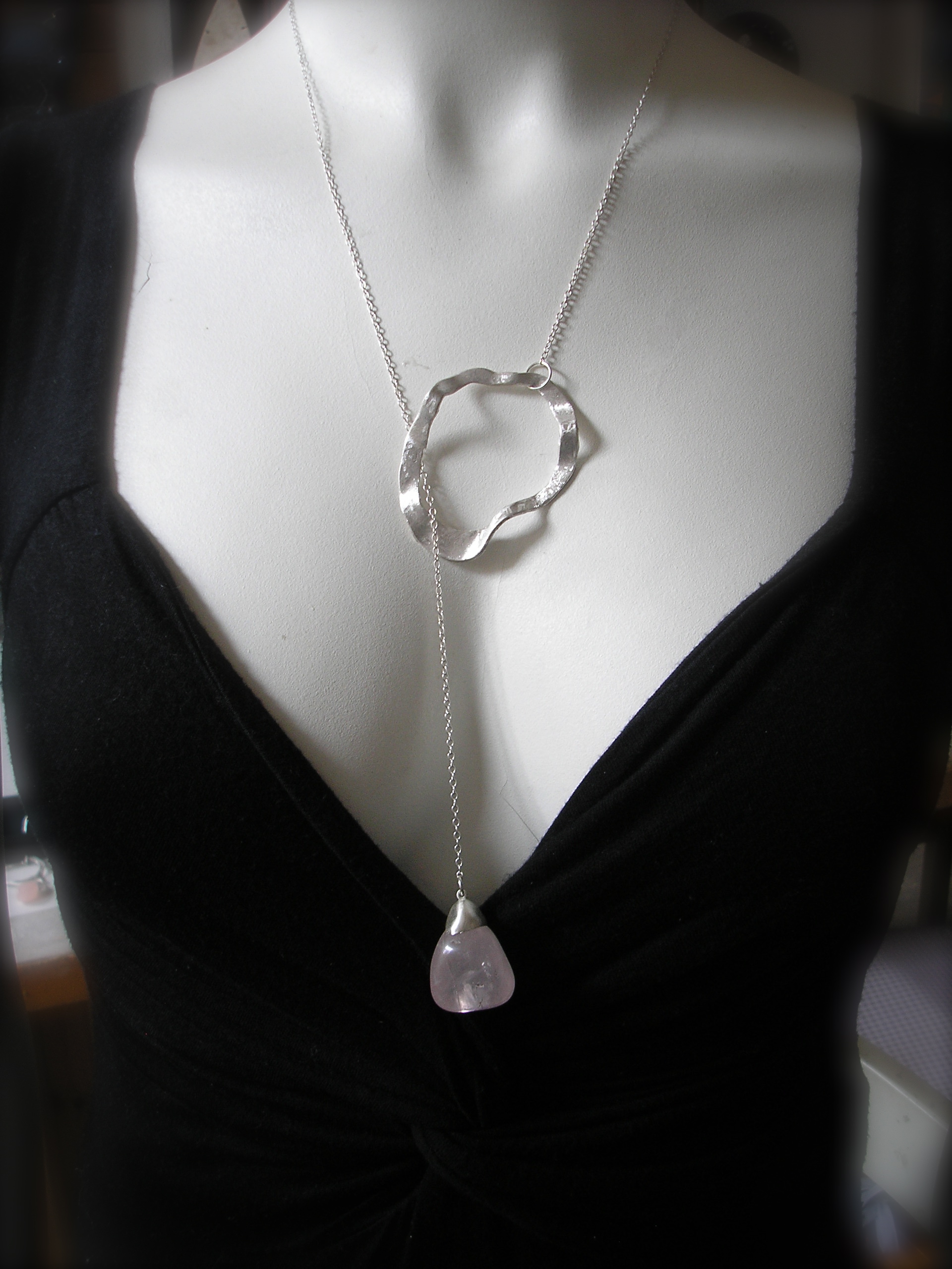 Lovely - Zilveren hanger aan gemakkelijk verstelbaar koord van zwart natuurrubber. Dit speelse zilveren sieraad is licht geoxideerd en brush polish afgewerkt. Draagt soepel en sportief! Uniek en one of a kind!