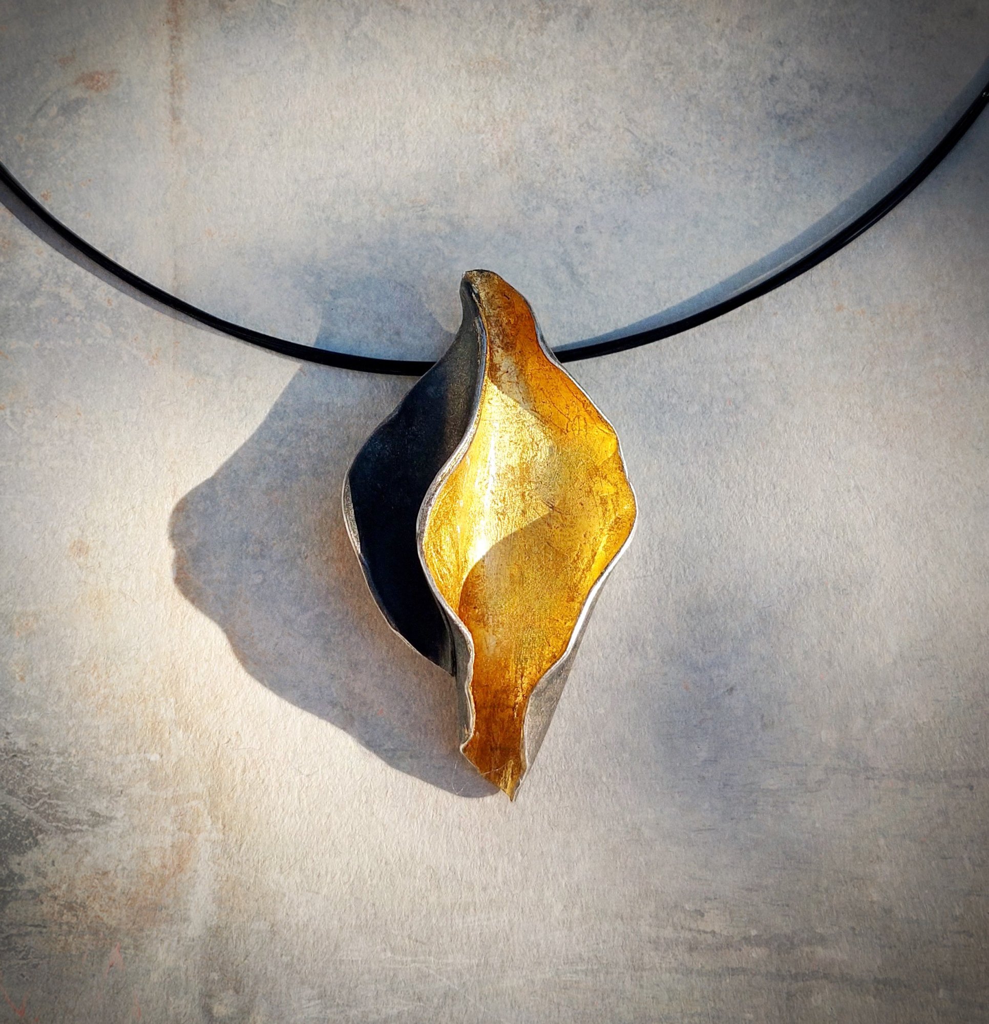 Classico Flores - Schitterend organisch vormgegeven zilveren hanger zilver met 24 krt goud afgewerkt. Het zilver is bewerkt met een donker patina wat zich prachtig verhoudt tot het goud. Bij delen van de hanger is het zilver weer licht zichtbaar gemaakt. Een betoverende combinatie - Stijlvol en klassiek - Geleverd aan een bijpassend subtiel meerdraads donker collier.