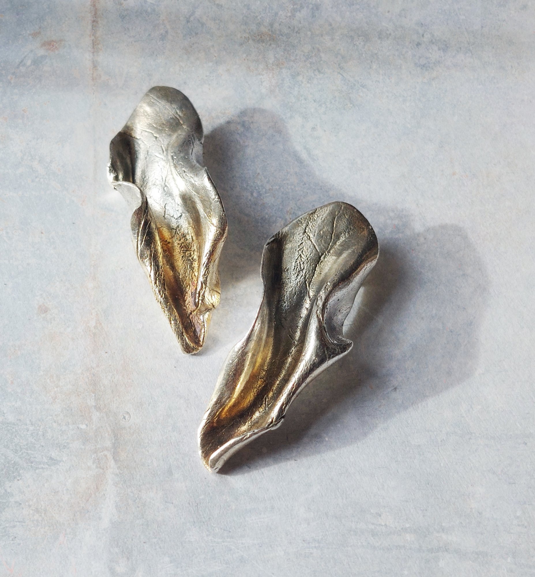 Mares - Zilveren organisch gevormde oorbellen. (kunnen eventueel ook met clips worden geleverd). Oorbellen geinspireerd door de vloeiende bewegingen van het stromende water.