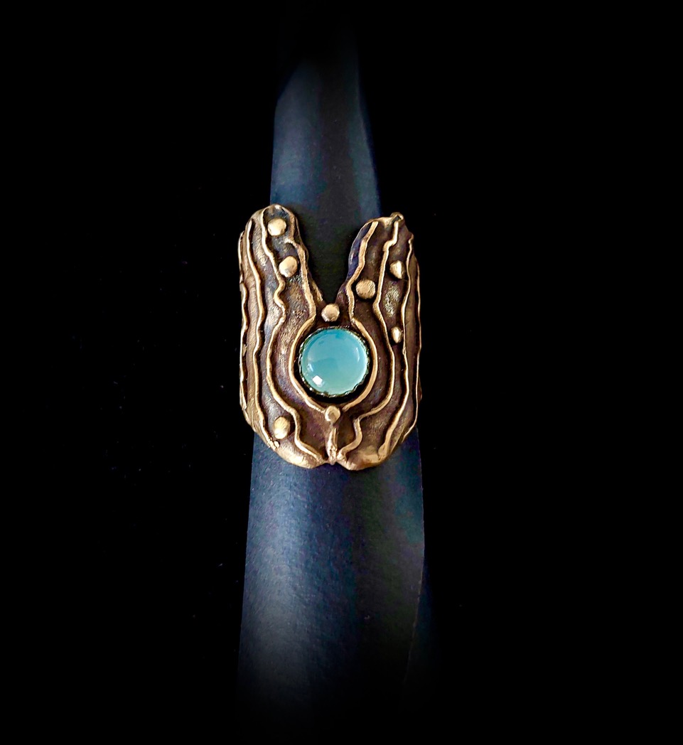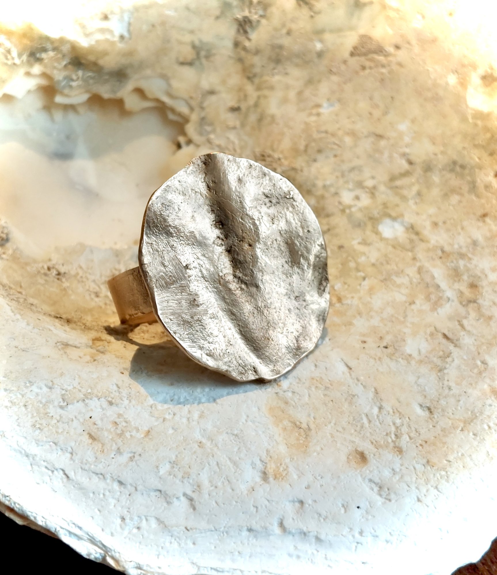 Jacaranda - Geweldig hoe de natuur mij steeds weer inspireert tot het maken van sieraden. De prachtige Jacaranda met zijn schitterende paarse bloemenpracht en grillige, krachtig gevormde zaaddozen. De Jacaranda vind je in Zuid-Europa en ook in Zuid-Amerika. In Spanje vind je de zaaddozen op de grond en zie je de boom in bloei, in overweldigend lila/paars. Ook o.a. in Argentinie, in de bruisende stad Buenos Aires, sieren deze bomen de straten. De ring draagt de afdruk en de vorm van deze zaaddoos in zich.