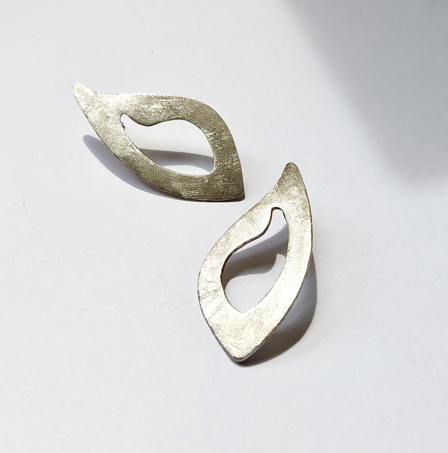 Jacaranda - Aparte goudkleurige oorstekers van brons. Organisch en opvallend van textuur. Vormt een set met Jacarande hanger aan zilveren collier met zwart rubberen sluiting. Het sieraad is gevormd en geinspireerd door de Zaden van de Jacarande boom nadat deze in bloei heeft gestaan met zijn prachtige lilabloemtoortsen. FLowers en seeds meet my needs