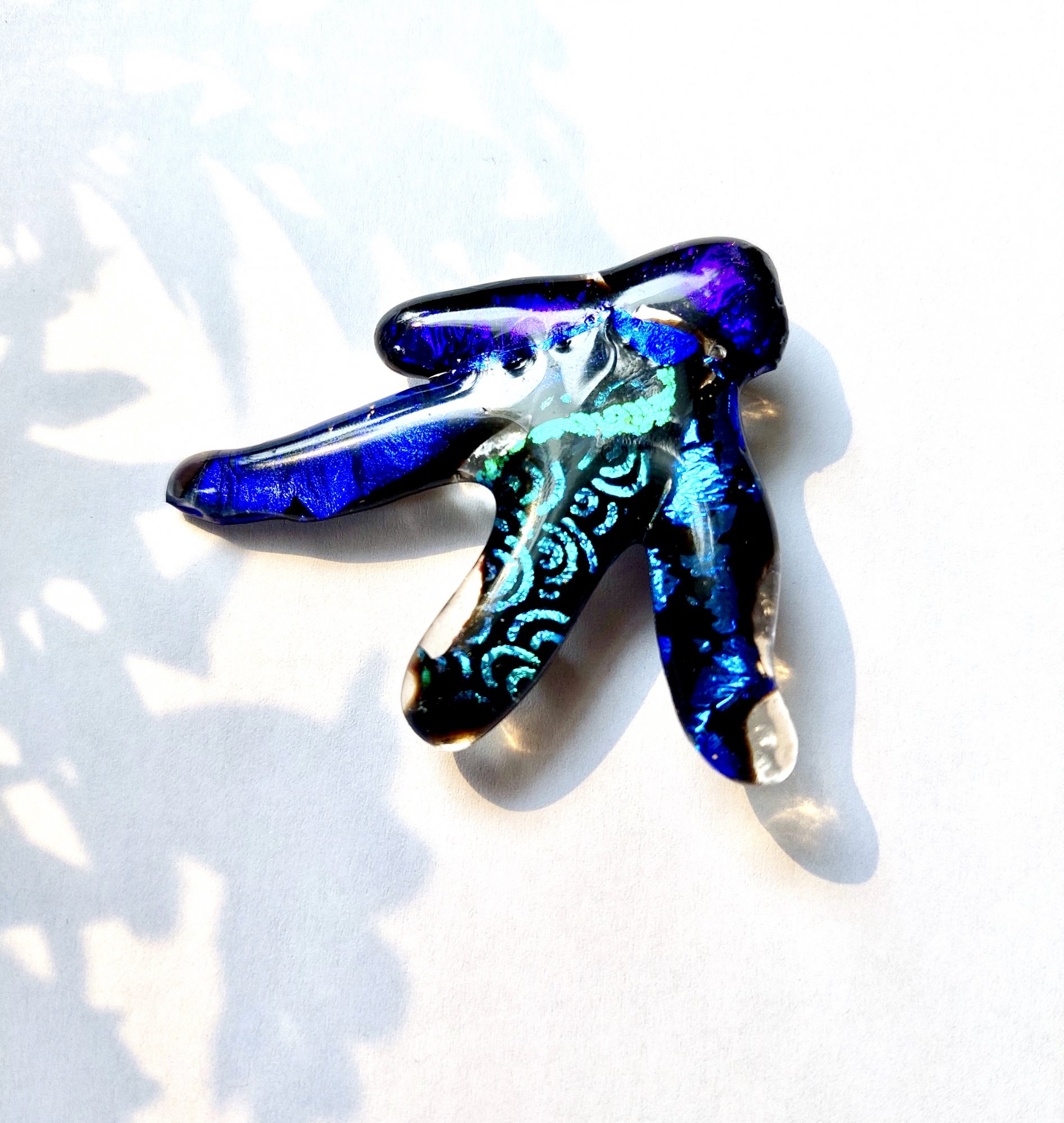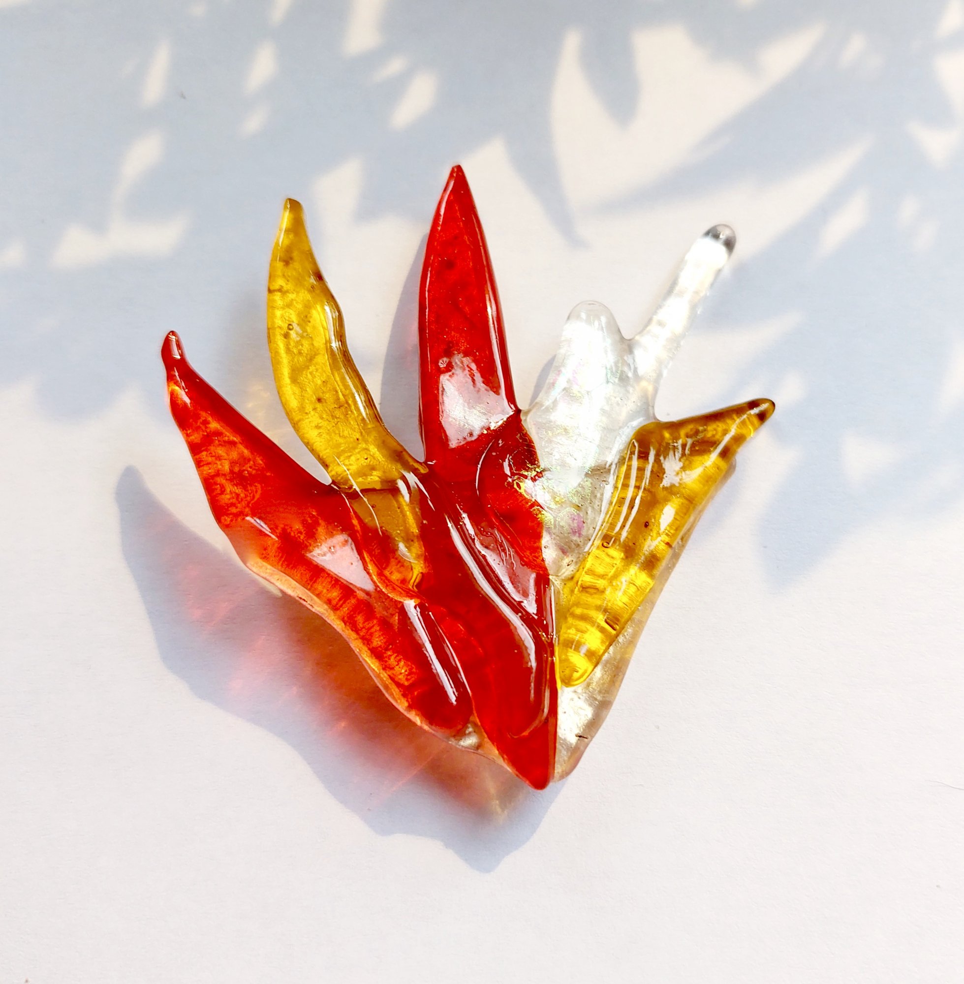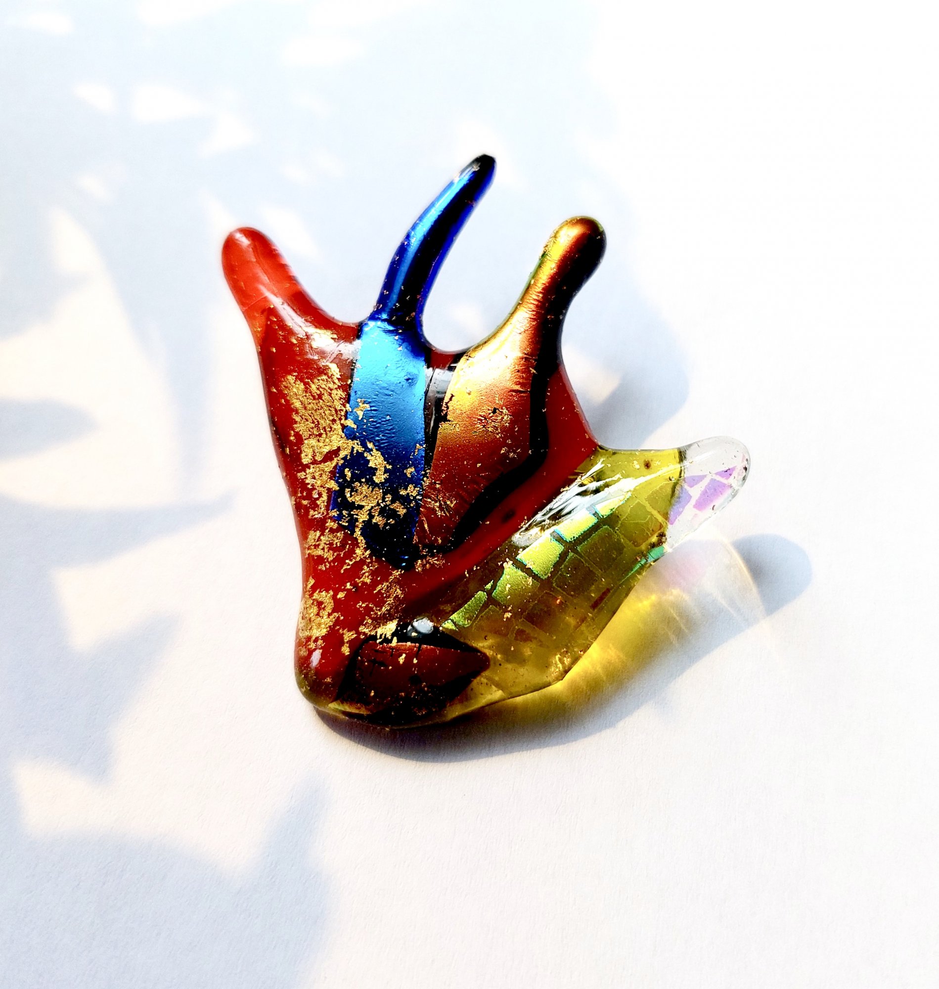 Corelli - Bijzondere zilveren smash cast hanger van in eigen atelier gefused glas en mineraal. Deze elegante Art Nouveau hanger met magische kleuren is artistiek, bijzonder, baroque en 'One of a Kind'. De hanger wordt geleverd aan een rond soepel vallend zilveren Omega collier. Het zilver in deze hanger is zeer hoog verhit waardoor het vloeibaar wordt en daarna gecast in koud water wat het zilver doet stollen in grillige vormen. De vormen die hierdoor ontstaan zijn vervolgens gecombineerd met het gefusede glas. Dit is opnieuw gezamelijk verhit, waardoor het zilver met het glas samensmelt. Een bewerkelijk en fascinerend procede wat tot dit prachtige sieraad heeft geleid. As special as you are