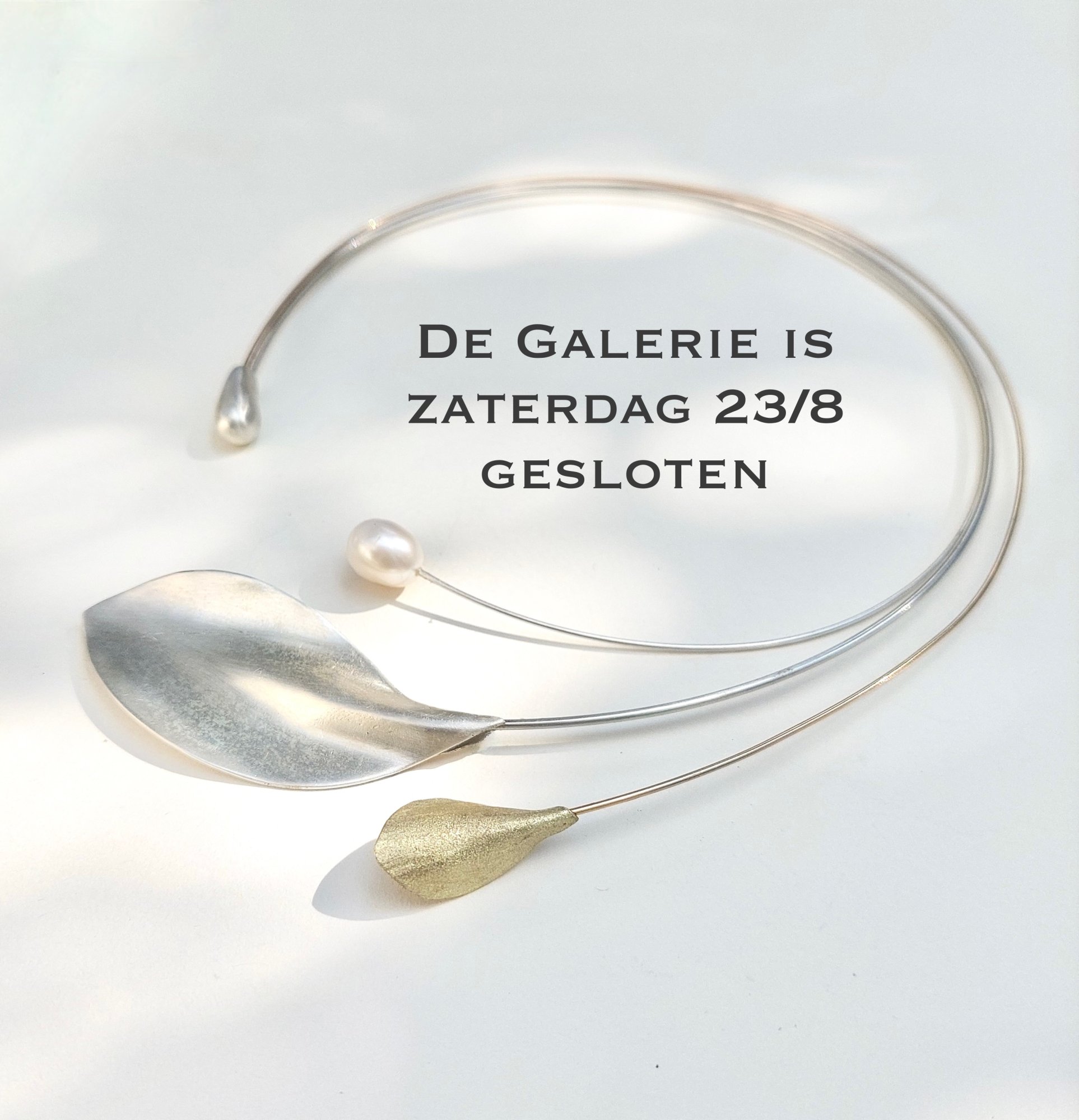 Paris - Asymmetrische 3-delige spang. Het zilveren blad , de schitterende witte parel en het massief 14 karaat gouden blaadje, vallen elegant om de hals. Een bijzonder en luxueus sieraad. Een stijlvolle blikvanger. De 3 delen komen samen in het zilveren knopje, van waaruit zij ontspringen. De spang bestaat uit 2 zilveren draden en een gold-filled draad.