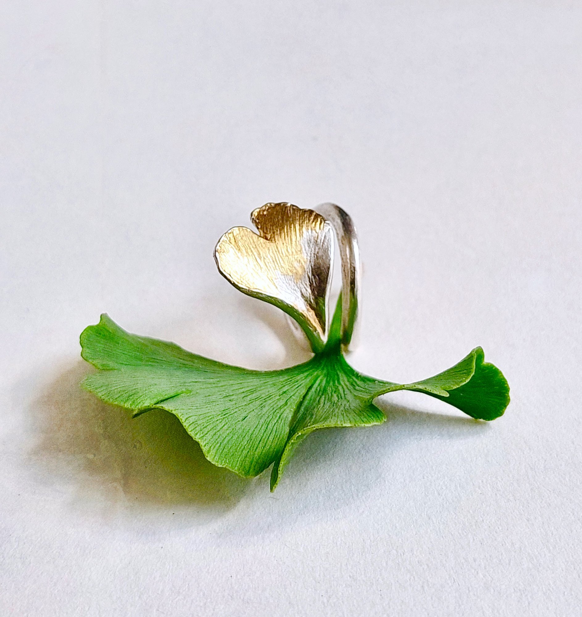 Ginkgo Biloba - Zilveren ring met goud