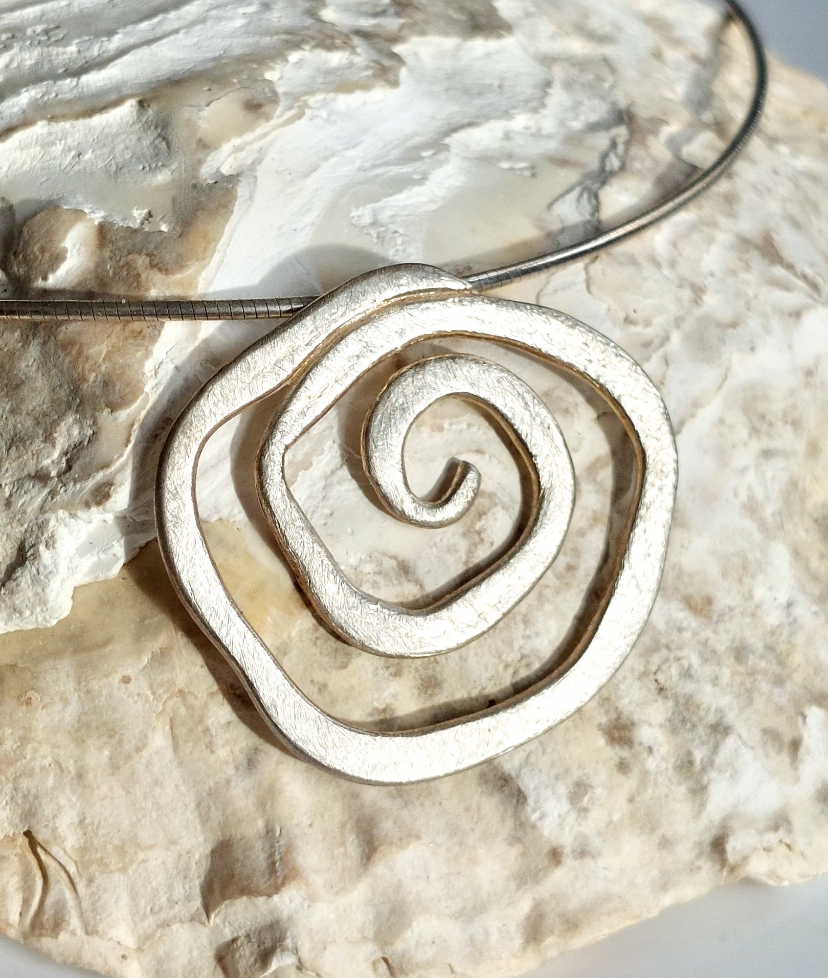 Vortex- Zilveren hanger in spiraalvorm. De oervorm van alle vormen, de bron, source. Verbind je met jouw source op elk moment van de dag. Dit sieraad herinnert je daaraan. Het zilver vangt prachtig het licht door het 'brush polish' oppervlak van de hanger. Handgemaakt voor jou, door Ingrid La Haye. De hanger wordt geleverd aan een mooi soepel vallend zilveren Omega collier. Connection with source