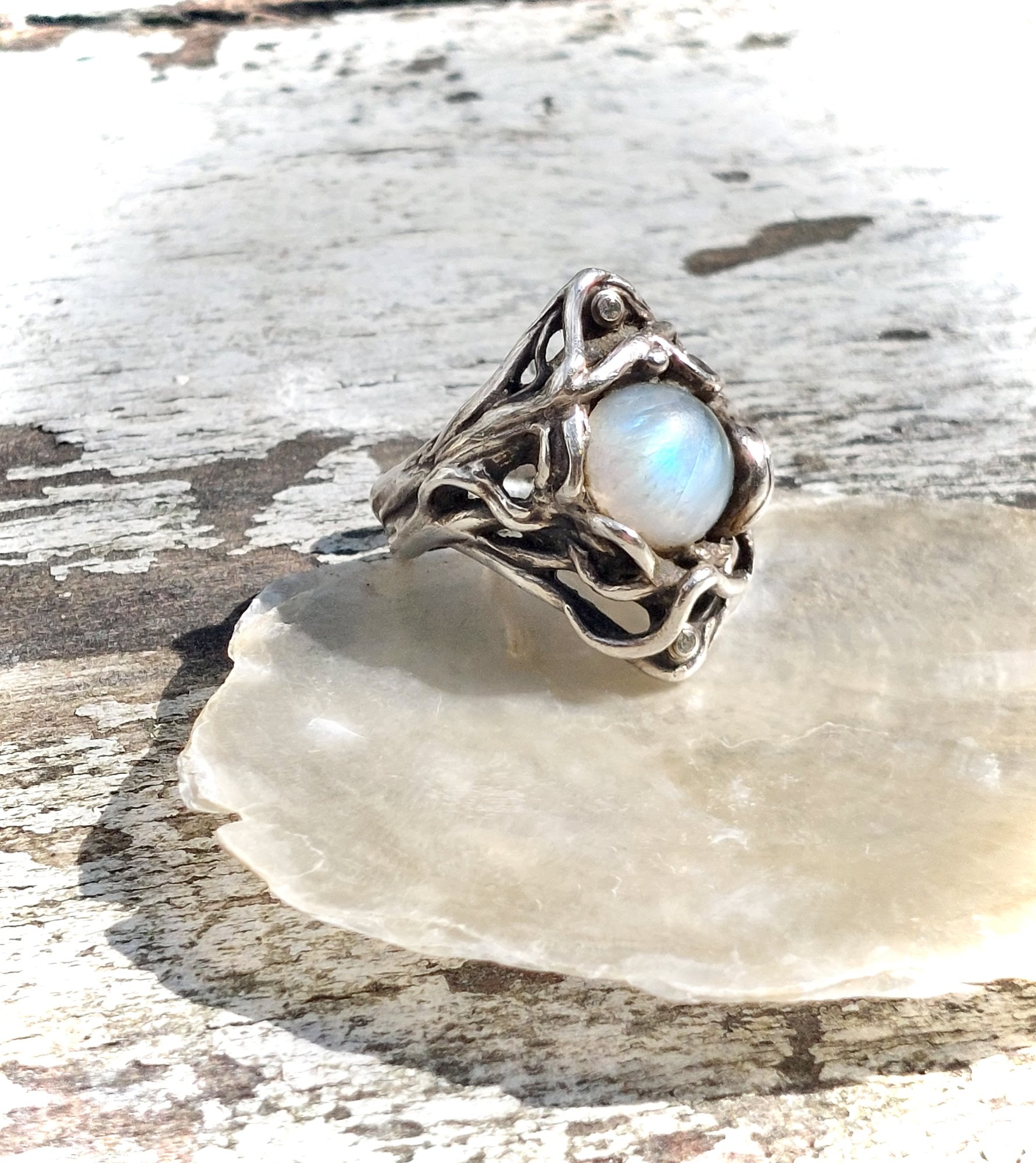 Lange Brochepin XX - Prachtige handgemaakte zilveren lange reverspin 'Soleil' met Maansteen voor op een mooi blazertje. Draag je de sierspeld liever op een halsdoek, sjaal of poncho? Dan staat dat natuurlijk ook heel leuk! Het stevige stoppertje zorgt dat de lange brochepin goed op zijn plek blijft zitten.