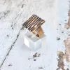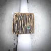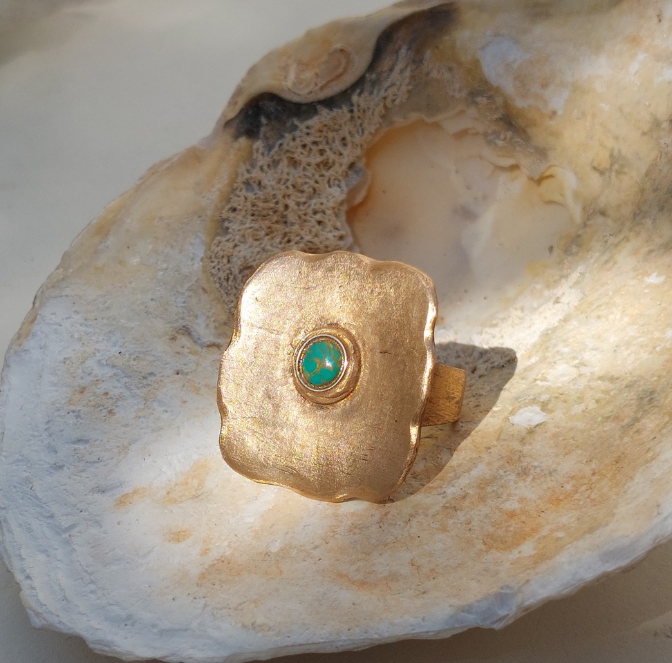 Square - Aparte goudkleurige moderne design ring. Opvallend is de organische textuur van deze unieke en stoere ring. De ring is vervaardigd uit brons en de fraai gepatineerde cannelures geven dit sieraad een bijzondere uitstraling!