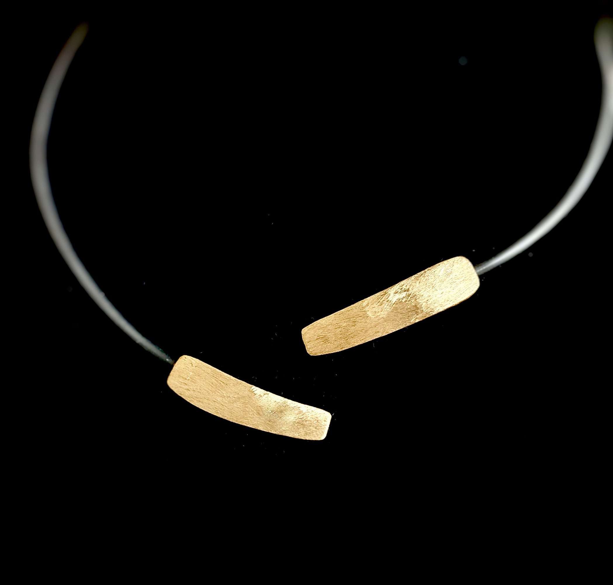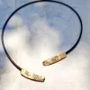 Elegante - Asymmetrisch halssieraad met prachtige Paua shell en handgevormd zilveren elementje. De rubberen spang heeft een zilveren kern en is daardoor zowel stevig als flexibel. Super sierlijk, elegant en origineel sieraad.
