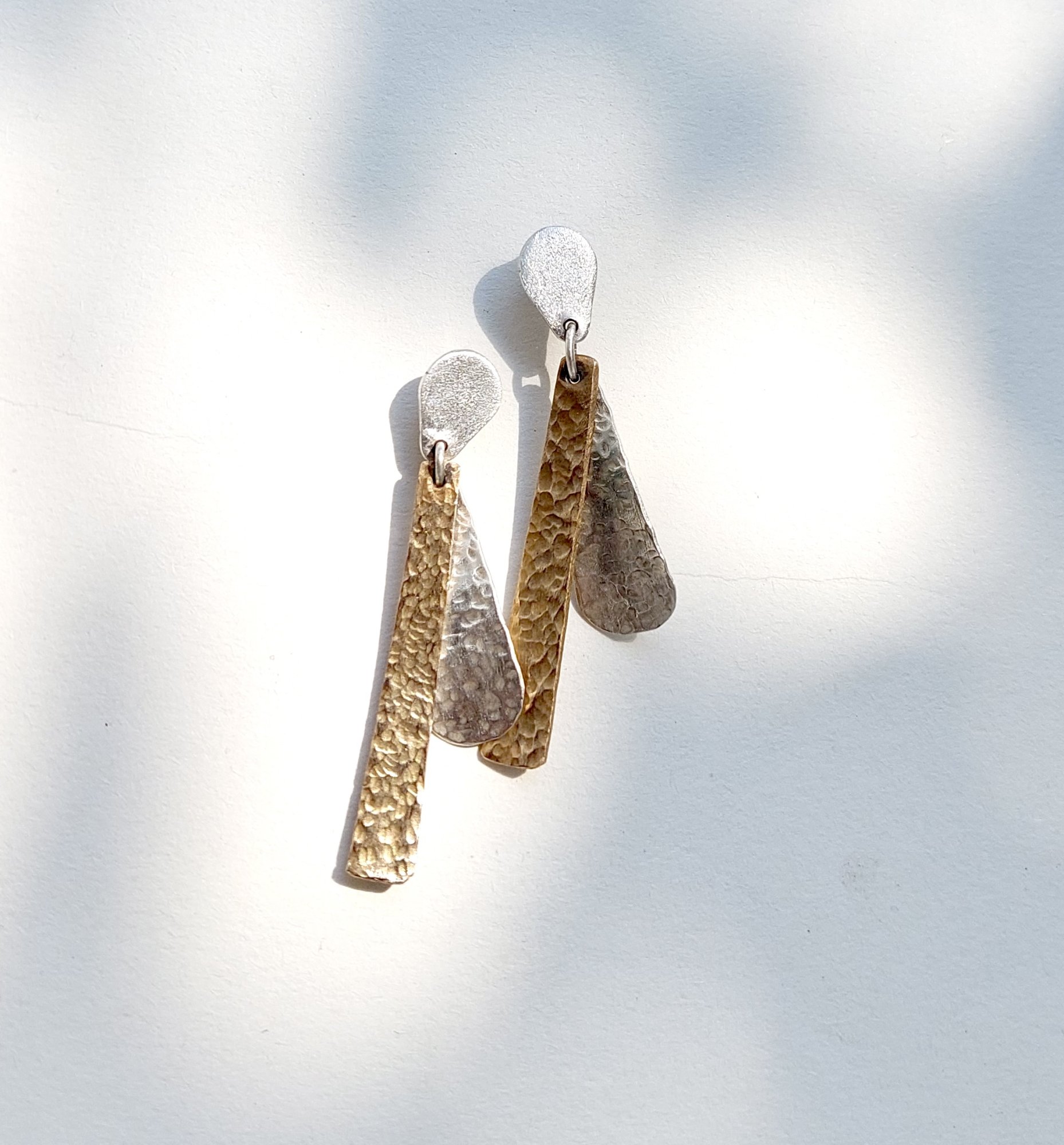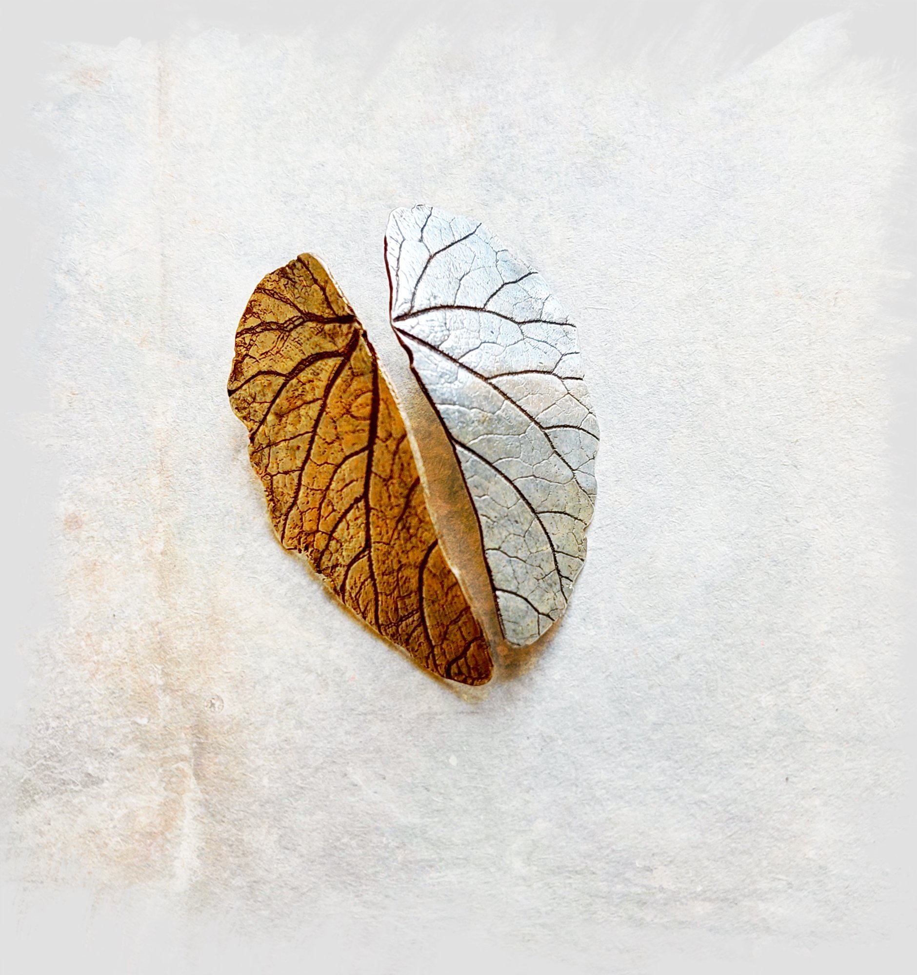Two of a kind -Unieke aparte bladvormige oorbellen van zilver en brons met zilveren oorstekers. De oorbellen kunnen ook worden geleverd met een oorclips op aanvraag. Een set organische oorbellen voor als je eens iets anders wilt! (Mocht je wel 2 gelijkkleurige orbellen willen, dan kan dit uiteraard ook). Two of a kind angelwings for an angel.
