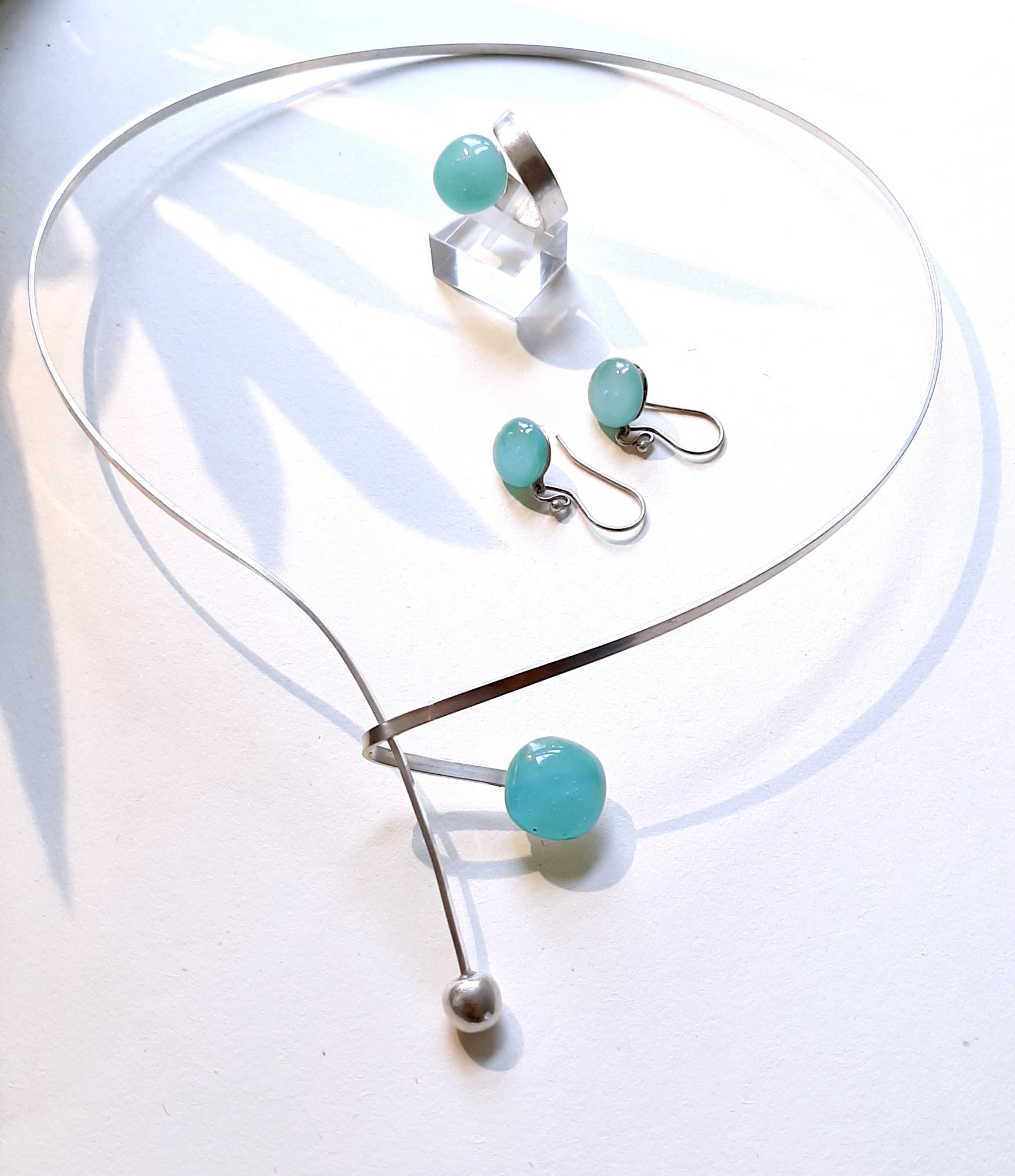 Mythos - Wanneer je echt iets anders en bijzonders wilt! Exeptioneel collier, speciaal ontworpen voor de collectie 'Sartorial Concepts' van couturier Peter George 'd Angelino Tap ter gelegenheid van de expositie 'Poetica' in Pulchri Studio te Den Haag. Een artistieke 'eye catcher' van grillig gevormd koperdraad en diverse fused glass-creaties. Een collier om mee op te vallen en de show te stelen! Every woman deserves to be noticed!