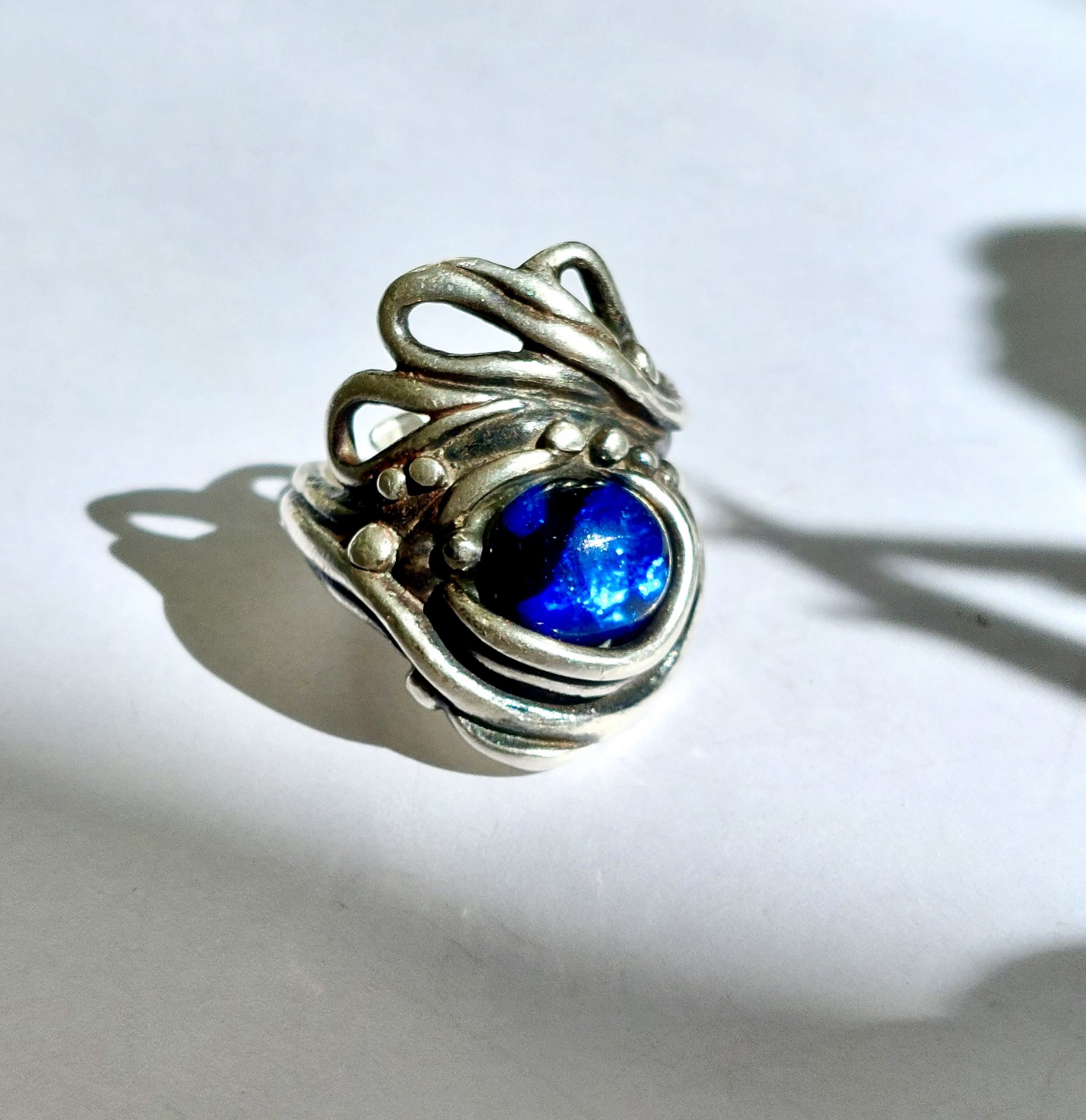 Corelli - Bijzondere zilveren smash cast hanger van in eigen atelier gefused glas en mineraal. Deze elegante Art Nouveau hanger met magische kleuren is artistiek, bijzonder, baroque en 'One of a Kind'. De hanger wordt geleverd aan een rond soepel vallend zilveren Omega collier. Het zilver in deze hanger is zeer hoog verhit waardoor het vloeibaar wordt en daarna gecast in koud water wat het zilver doet stollen in grillige vormen. De vormen die hierdoor ontstaan zijn vervolgens gecombineerd met het gefusede glas. Dit is opnieuw gezamelijk verhit, waardoor het zilver met het glas samensmelt. Een bewerkelijk en fascinerend procede wat tot dit prachtige sieraad heeft geleid. As special as you are