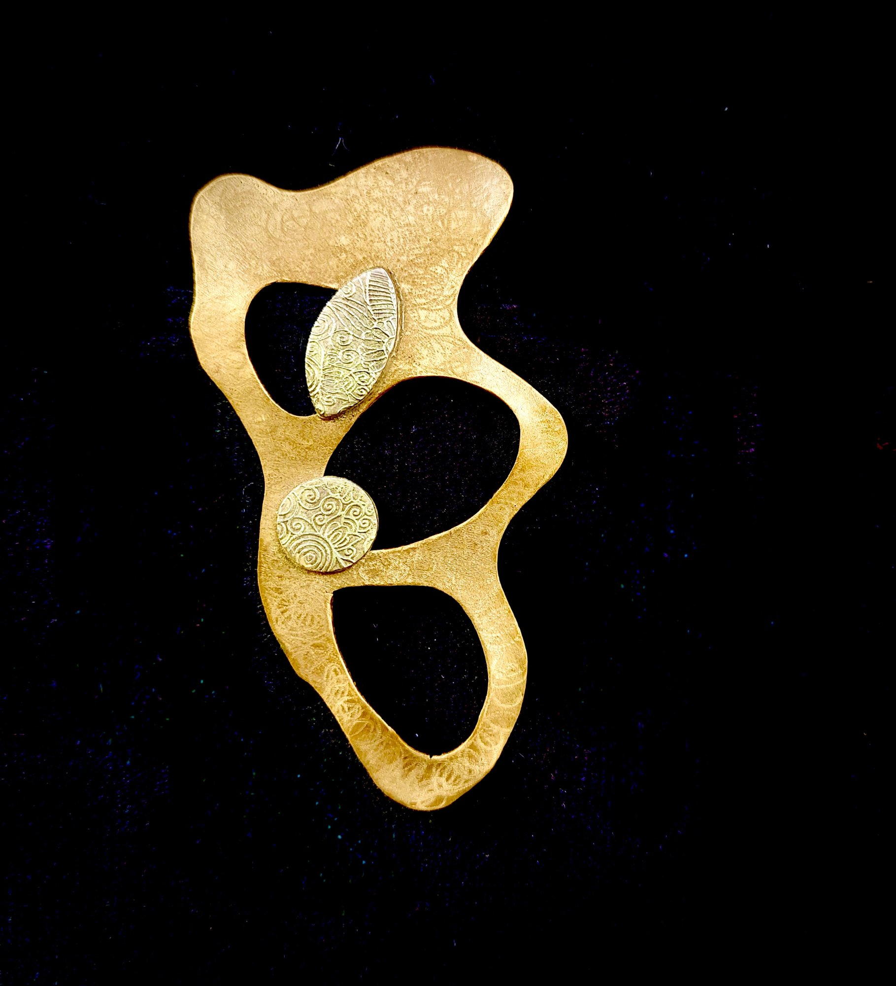 Movimiento - Deze aparte goudkleurige schuifbroche is afgewerkt met zilver en kan gedragen aan de boord van een stevig shirt, revers van een jasje of boord van een jurkje. Het unieke ontwerp van de schuifbroches van La Haye Jewelry blijft goed zitten en maakt geen gaatjes in je kleding! (Afmeting: 7x4cm) Een Stijlvolle eyecatcher! You move me