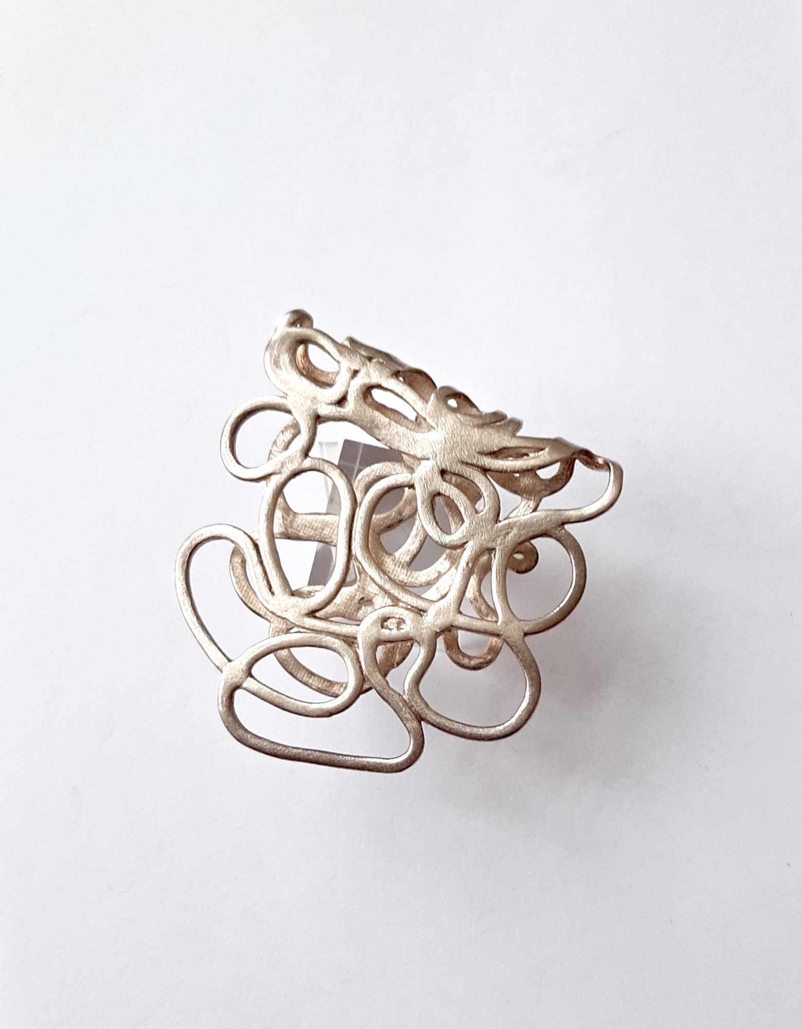 Movimiento - Deze aparte goudkleurige schuifbroche is afgewerkt met zilver en kan gedragen aan de boord van een stevig shirt, revers van een jasje of boord van een jurkje. Het unieke ontwerp van de schuifbroches van La Haye Jewelry blijft goed zitten en maakt geen gaatjes in je kleding! (Afmeting: 7x4cm) Een Stijlvolle eyecatcher! You move me