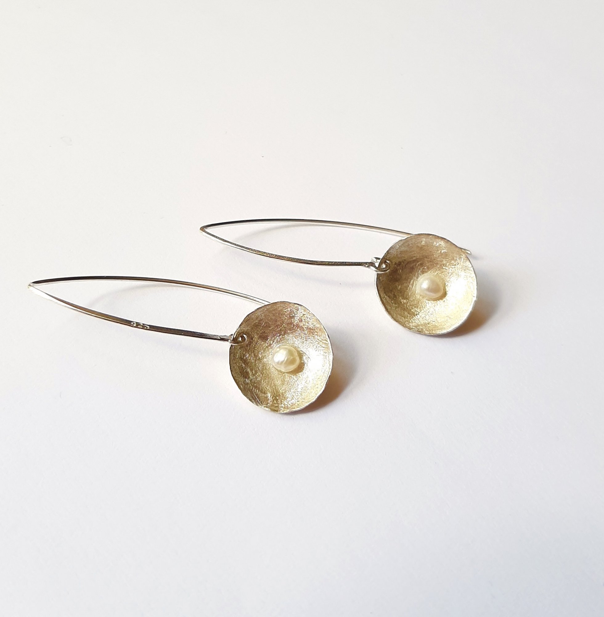 Perolas - Sierlijke oorhangers van zacht glanzend zilver. Ze dragen licht en hebben leuke lange oorhaakjes. Fijne parels gekoesterd in een zilveren schaaltje... Whispering in your ear ... memories of the sea...Combineer met het bijpassende collier Perolas. Watch the sunset, fall in love, embrace life....