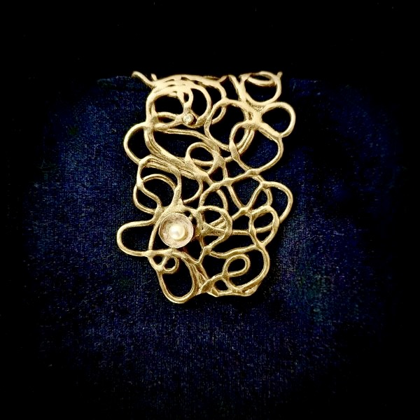 Ramillas - Deze elegante broche van brons, schuift over je kleding. Jurk, trui of revers van je colbert. Blijft goed zittten en je hebt geen gaatjes in je kleding dankzij dit unieke ontwerp. Geinspireerd door grillige twijgen en slingerende guirlandes in gouden tinten. Deze organische broche is ook als hanger te dragen aan een collier! Een Stijlvolle eyecatcher 'inspired by nature'. Golden light is at your side