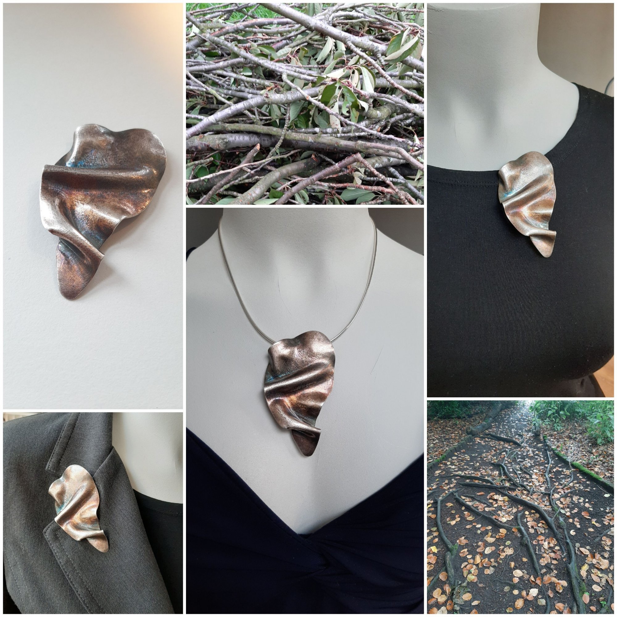 Feuilles - Zilveren broches in verschillende tinten en nuances... organische bladvormen, unieke handgemaakte zilveren schuifbroches voor op de revers van een mooi colbert, of aan je top. Kan ook aan een collier worden gedragen. Voor de veelzijdige en creatieve vrouw! Deze broches maken door het vernuftige ontwerp geen gaatjes in je keding! Dragen perfect. Benieuwd? Kom passen!De bladvormige broches zijn er in verschillende afmetingen, varierend tussen 4x4 cm - 8x4 cm - 5x3 cm Creation is your nature