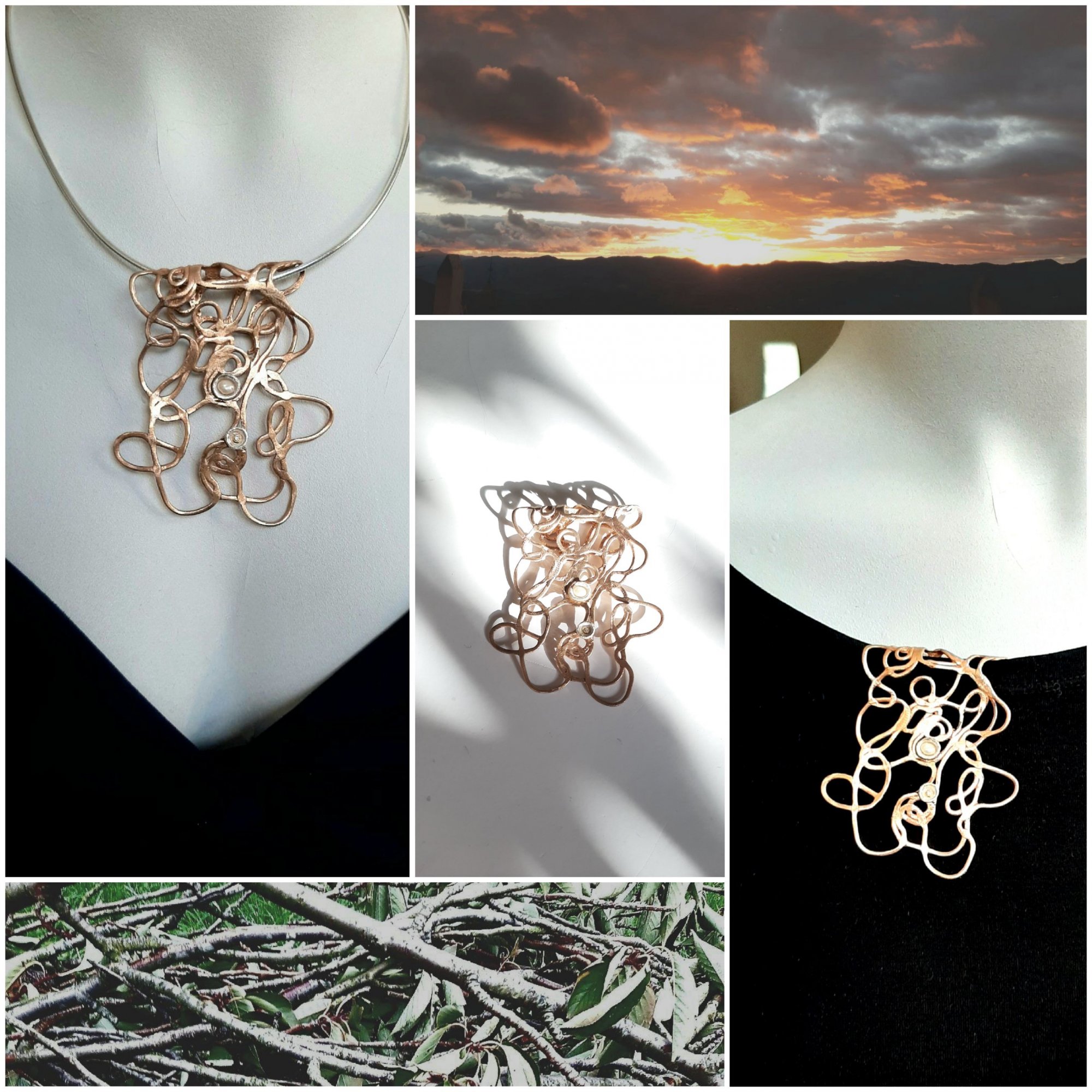 Ramillas - Deze elegante broche van brons, schuift over je kleding. Jurk, trui of revers van je colbert. Blijft goed zittten en je hebt geen gaatjes in je kleding dankzij dit unieke ontwerp. Geinspireerd door grillige twijgen en slingerende guirlandes in gouden tinten. Deze organische broche is ook als hanger te dragen aan een collier! Een Stijlvolle eyecatcher 'inspired by nature'. Golden light is at your side
