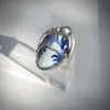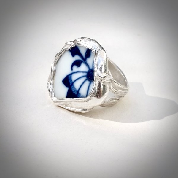 Royal Delft - Zilveren ring met schitterend delftsblauw element. Deze sierlijk en organisch vormgegeven ring is helder van kleur en aanpasbaar in maat. De ringband heeft een open structuur wat een extra speels element toevoegt aan dit unieke sieraad en fijn draagt. Combineer deze ring met de Delfts blauwe oorbellen Royal en het collier Royal met Delfts Blauw en parels.