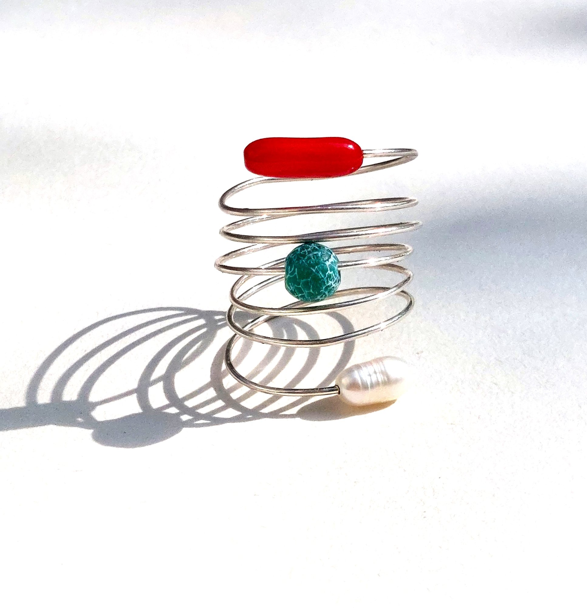Primavera - Prachtig sierlijk om de hals vallend zilveren collier met zilveren eucalyptus blad, 24 karaat goud, jade, parelmoer, bamboekoraal, groene agaat en parels. Een uniek, one of kind, schitterend halssieraad voor alledag of die speciale gelegenheid, zomerse avond of feest. Gemaakt voor jou. Made for you with love